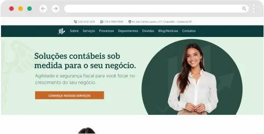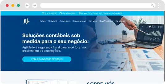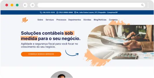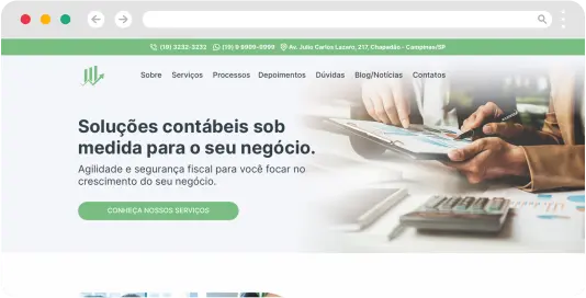 Contabilidade é coisa séria. Sem um site profissional, seu escritório pode parece amador, e isso afasta oportunidades todos os dias. Mesmo que você seja excelente, se sua presença online não mostra isso, o cliente fecha com quem transmite mais segurança.